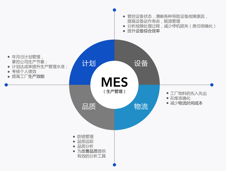 管理生產(chǎn)活動的所有行為,包含 生產(chǎn)計劃,生產(chǎn)實績,生產(chǎn)工藝,品質(zhì)管理,品質(zhì)追蹤,設(shè)備管理,倉儲管理,能源管理等;