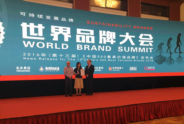 6月22日,由世界品牌實(shí)驗(yàn)室(World Brand Lab)主辦的“世界品牌大會”在京舉行,會上公布了2016年(第十三屆)《中國500強(qiáng)最具價(jià)值品牌