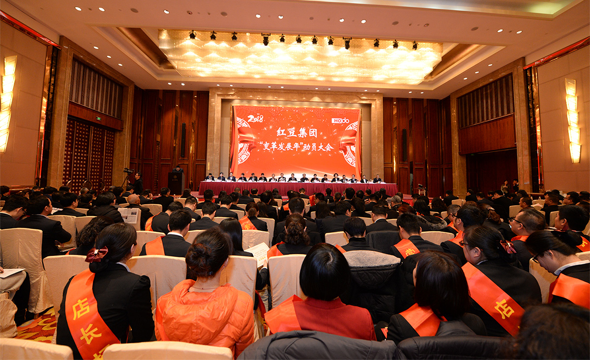 2月22日,紅豆集團召開2018變革發(fā)展年動員大會,紅豆集團創(chuàng)始人、集團股東會會長周耀庭、集團董事局主席兼CEO周海江等集團領(lǐng)導,
