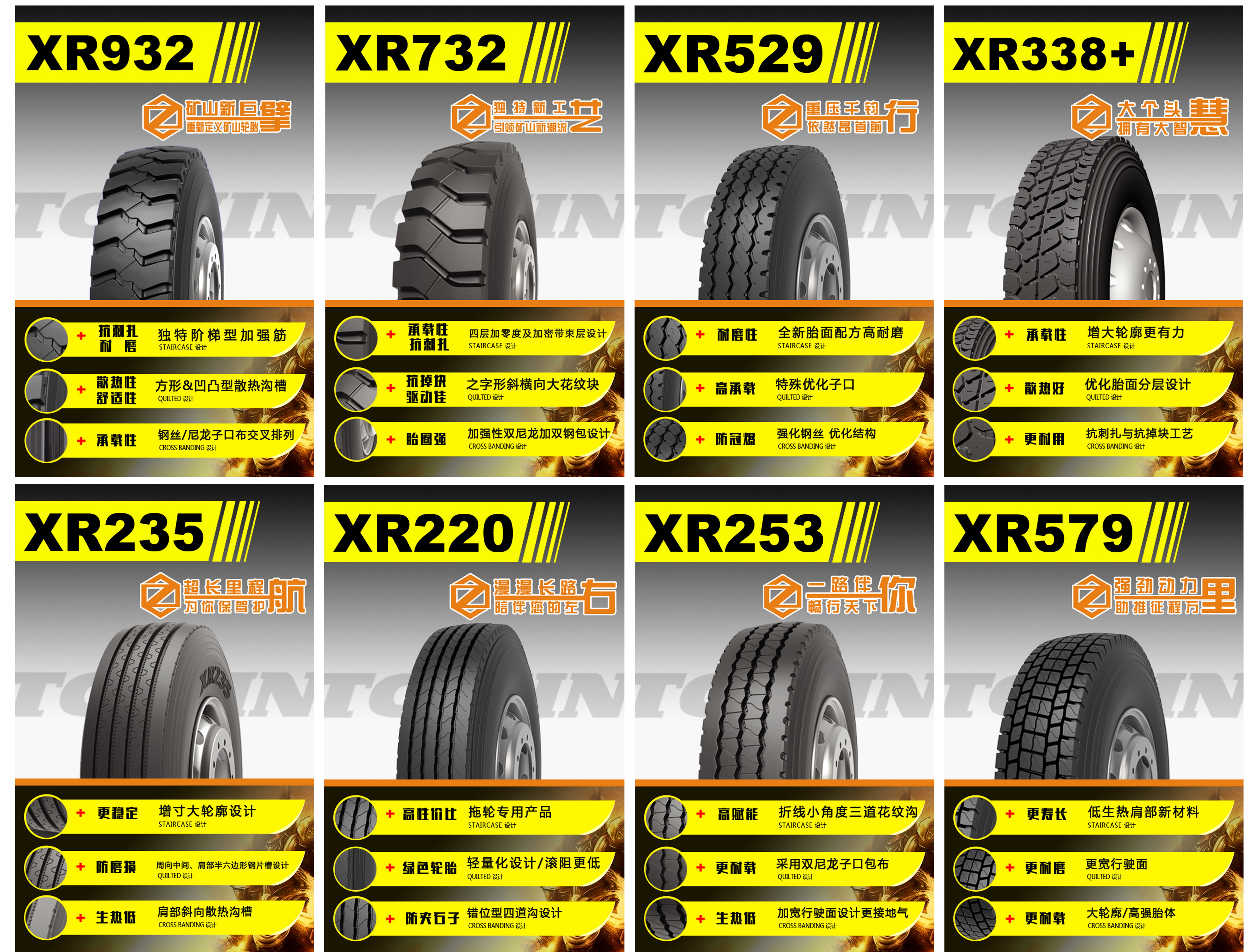 XR932具備獨(dú)特的階梯型加強(qiáng)筋設(shè)計(jì),輪胎更抗刺扎、更耐磨,使用壽命更長,方形&凹凸型散熱溝槽,有效增強(qiáng)輪胎散熱性、舒適性,通過優(yōu)化鋼絲/尼龍子口布交叉排列,使輪胎具有卓越的承載性能。