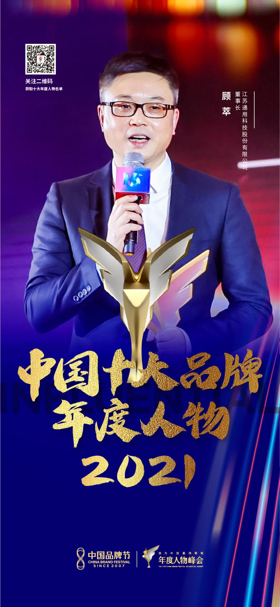 12月26日,中國品牌節年度人物峰會在京盛大舉行。峰會揭曉了2021 十大品牌年度人物候選人、2021 十大首席品牌官候選人、2021 十大年度節慶品牌人物等榮譽獎項。通用股份董事長顧萃被評選為“2021年度十大品牌人物”。