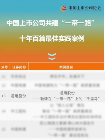 近日,中國上市公司協會發布《中國上市公司共建“一帶一路”十年百篇最佳實踐案例》,紅豆集團控股子公司通用股份(601500.SH)的實踐案例《馳騁在“一帶一路”上的千里馬》實力“出圈”成功入選。