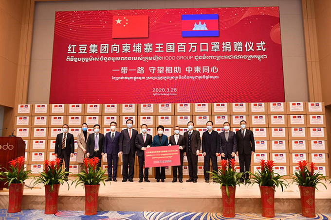 記者了解到,此前3月28日作為在柬投資、主導開發西港特區的中國龍頭企業——紅豆集團,專門向柬埔寨王國捐贈了100萬只口罩。“患難見真情”。在柬埔寨疫情防控進入攻堅期,紅豆人以實際行動表達了中國人民對洪森首相英明領導的一份敬意,對柬埔寨人民的一份深厚情意。