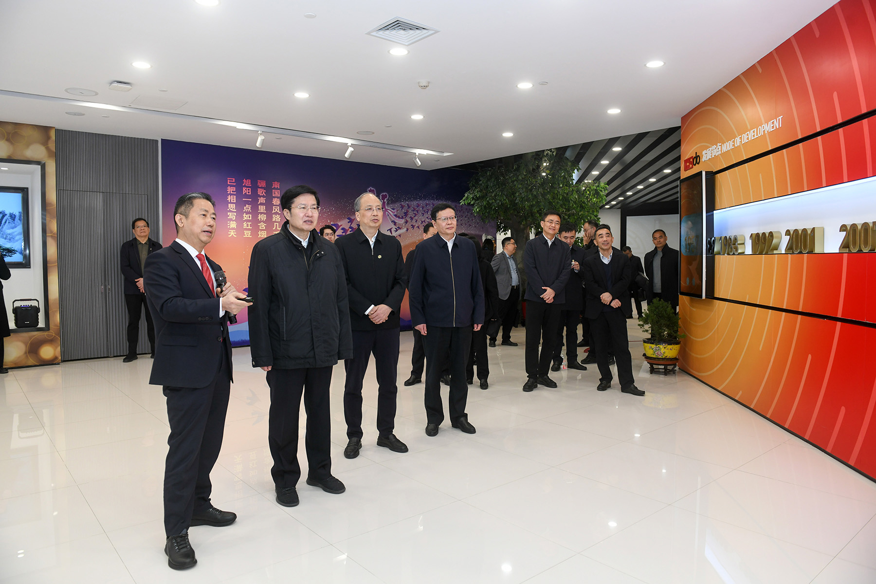 在紅豆集團展廳,無錫市工商聯主席、紅豆集團黨委書記、董事局主席周海江介紹了集團“三代領頭人”創業接力的傳承故事、“三自六化”發展戰略和68年來“聽黨話、跟黨走”,堅守實體經濟,聚焦發展服裝、輪胎和制藥三個產業所取得的成績。周海江介紹說,黨和政府一直關心支持民營經濟發展,紅豆未來將繼續堅持“堅定不移聽黨話、跟黨走,走正道、走大道”,以高質量黨建引領企業高質量發展。將堅持干字當頭,增強信心,迎難而上,奮發有為,向“新”而行,向“高”攀登。周海江還詳細介紹了紅豆集團在柬埔寨主導開發建設的西哈努克港經濟特區發展情況以及紅豆堅持八方共贏、積極踐行社會責任的具體舉措。