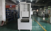 2、外形尺寸(約):總長10200mm*總高1770mm(不含馬達(dá)高)*總寬1050mm,地面到網(wǎng)帶的高度為900mm,內(nèi)寬為650mm,進(jìn)料高度為500mm;烘干部分總長8000mm,分4段,每段2000mm,烘干區(qū)前后設(shè)有自動升降門;出口處需設(shè)有阻擋氣缸和治具感應(yīng),可以自動和手動運(yùn)行。可以手動清板,把機(jī)內(nèi)托盤手動放出。