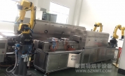 2、本生產(chǎn)線分為機械手移載產(chǎn)品至菱形線、取樣與安全防護門、菱形輸送線、預熱爐、產(chǎn)品出爐溫控監(jiān)測及位置檢測、噴硅系統(tǒng)、視覺檢測系統(tǒng)、流量監(jiān)測系統(tǒng)、NG排除機構、機械手移載至網(wǎng)帶輸送線、取樣與安全防護門、網(wǎng)帶輸送線、固化爐、機械手移載至包裝線、取樣與安全防護門;系統(tǒng)分為兩種生產(chǎn)模,硅化線和非硅化。