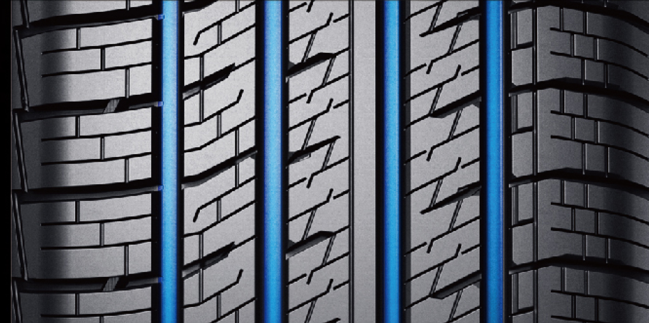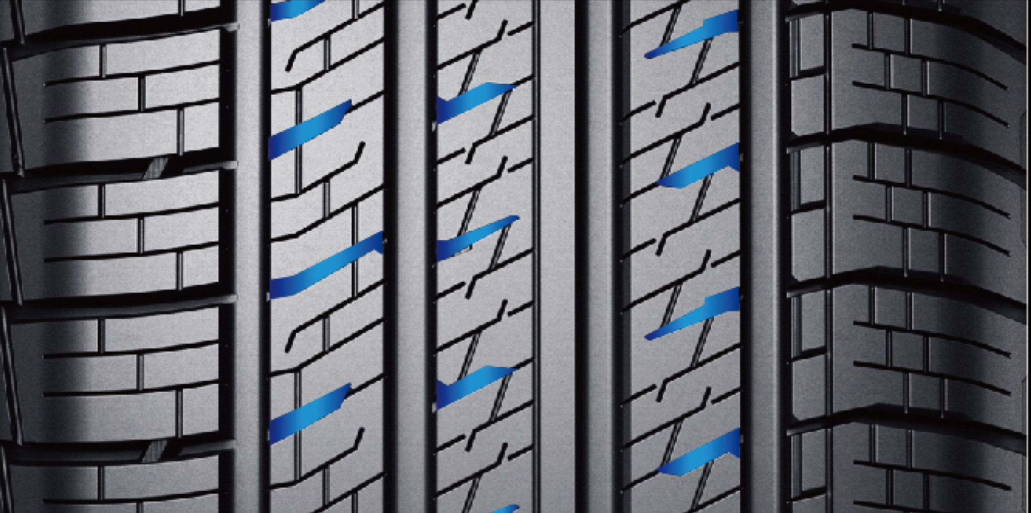 主溝與橫向溝槽連續貫通,確保排水暢順,即使在泥濘或積水的路面也能快速排出積水,減少輪胎的排水阻力。特別適合在雨雪天氣或混合路面使用,能夠顯著提升輪胎的牽引性能和操控穩定性